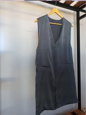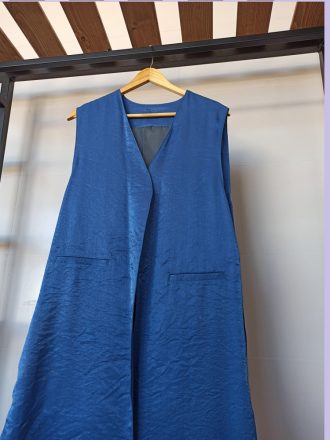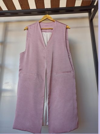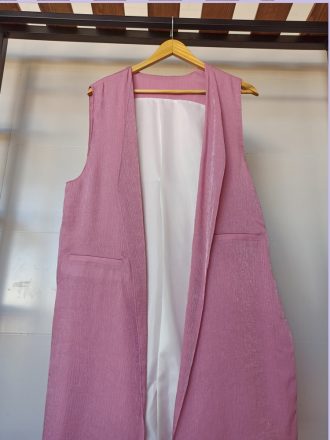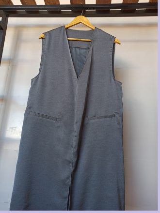 قد : 92 عرض سینه : 46 دارای چاک طرفین یک رو براق و یک رو مات جیبها نمایشی است.