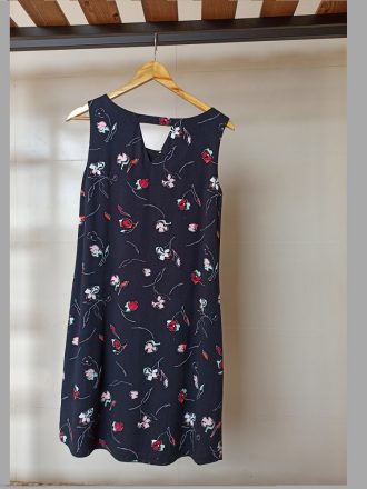سرمه ای گلدار عرض سینه 44 قد 93 داری دو جیب جلوی پیراهن